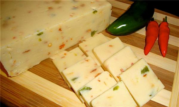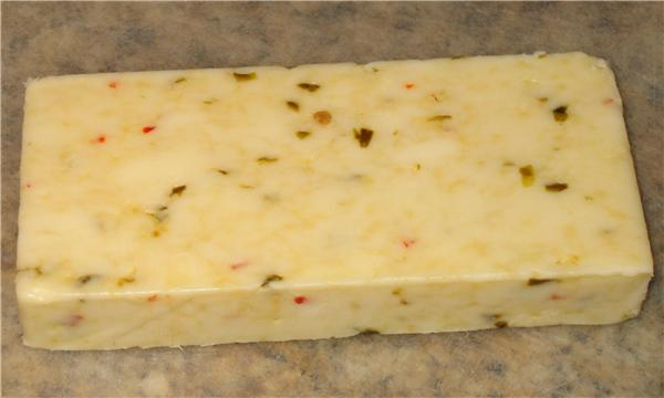 This is essentially Monterey Jack cheese seasoned with bell peppers, jalapenos, rosemary, and garlic. It's great as a snack or on a burger. Surprisingly, it's also delicious with cantaloupe.