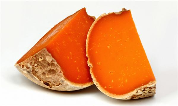 This cheese is orange inside and looks like a hardened sweet potato; the rind is rough and not very attractive. After 5 months of maturation, it becomes firm and slightly oily, with a fruity and nutty aroma. It takes 6 to 12 months to fully mature, after which it becomes very hard and has a slight orange peel flavor.