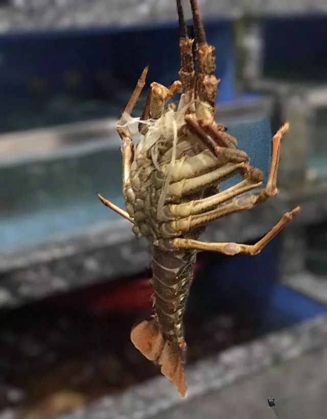 Among the prawns, females are more expensive, known in the market as "lamb shrimp," and have a deep black body . Females are even more valuable because they carry eggs. The market price for females is around 400 yuan per catty, always 100 yuan higher than for males. The picture below shows a 4-liang (approximately 100 grams) lamb shrimp.
