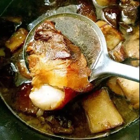 The bazhirou in the bazhirou jiamo is a type of meat cooked in a large pot. During cooking, a thick layer of fat is formed on the broth to retain heat and flavor. Because of the high fat content, the fat becomes white like wax after cooling, and the lean meat also looks like wax, hence the name bazhirou.